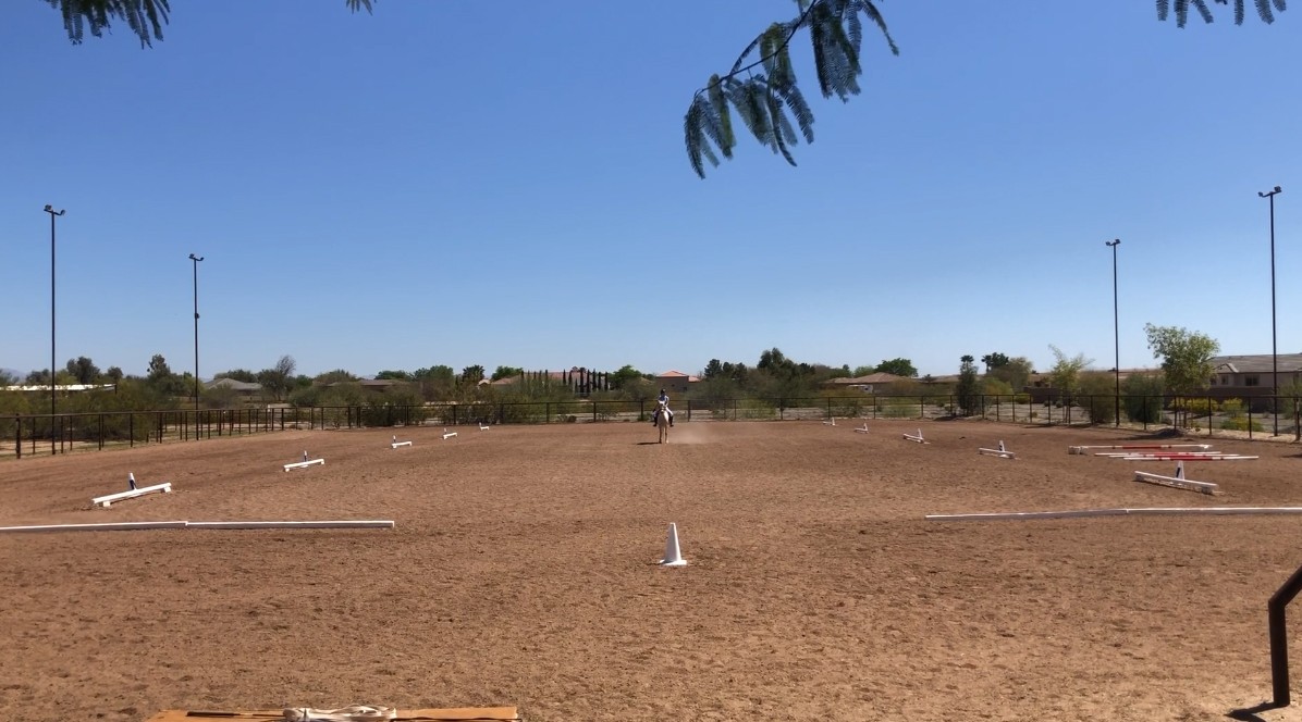 Film from the EXACT position as where a judge, in a onsite show would sit. Not the left, Not to the right, but right in back of Letter C by about 4-5 feet. If the sun is facing you, then reverse your arena OR wait for another time of day. If you choose to reverse the arena, because of lighting, fences or other issues, make sure to change the letters! The judges use those letter markers to score your movements.