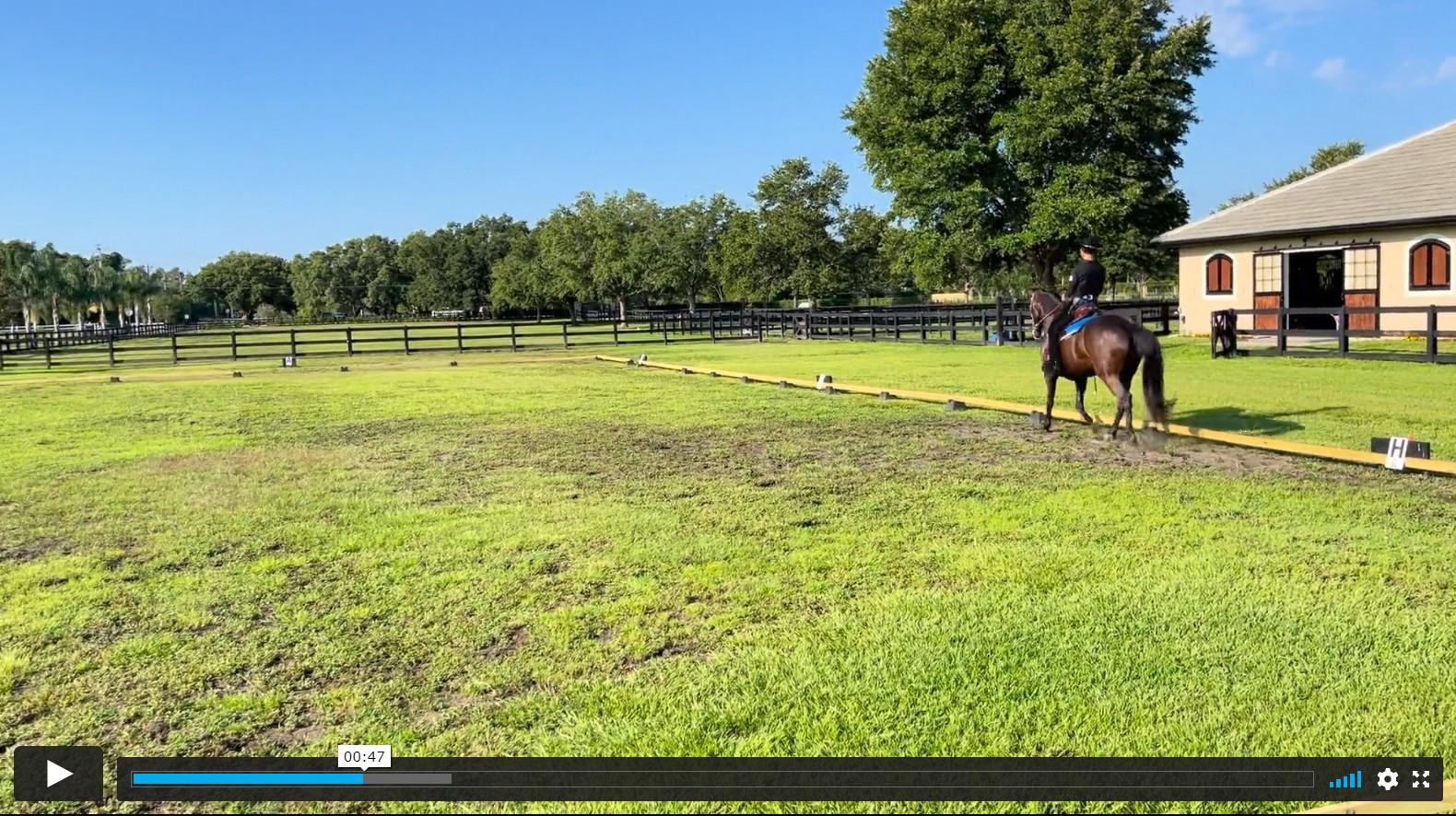 D) Very rarely a rider goes off course , such as turns the wrong way off the centerline entry, and then just keeps going. Since you cannot ring the bell to stop to correct them, the default solution is that they are eliminated on the third error as a off-course. However, some platforms, such as VirtualHorseSport.com, MAY allow you to offer the rider a “re-ride” if the rider films and provides a new video within a specific amount of time. If the rider complies, you would then continue the review from the place of the error, but still indicating the original error. Otherwise the elimination stands. Check with your platform and show organizers, for which option is available to you, prior to you starting to judge.